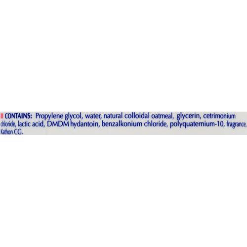 Propilenglicol, Agua, avena coloidal natural, glicerina, cloruro de cetrimonio, ácido láctico, DMDM hidantoína, cloruro de benzalconio, policuaternio-10, fragancia, Kathon CG.