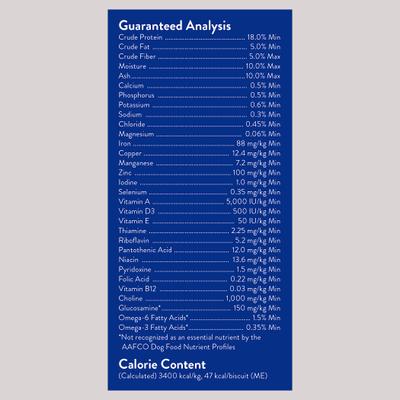 Wheat Flour, Chicken By-Product Meal (Source of Glucosamine), Ground Wheat, Corn Meal, Wheat Mill Run, Animal Fat (Preserved with Mixed Tocopherols), Salmon Oil (Preserved with Tocopherols), Natural Flavor, Calcium Carbonate, Salt, Potassium Chloride, Vitamins (Choline Chloride, Vitamin E Supplement, d-Calcium Pantothenate, Vitamin A Supplement, Niacin Supplement, Riboflavin Supplement, Thiamine Mononitrate, Pyridoxine Hydrochloride, Vitamin D3 Supplement, Menadione Sodium Bisulfite Complex [Source of Vitamin K Activity], Folic Acid, Biotin, Vitamin B12 Supplement), Minerals (Zinc Sulfate, Ferrous Sulfate, Copper Sulfate, Manganese Sulfate, Sodium Selenite, Calcium Iodate), Peas, Dried Cheese, Meat and Bone Meal, Chicken Liver, Caramel Color, Yellow 5, Red Iron Oxide Color, Black Iron Oxide Color, Yellow 6, Blue 2, Red 40, Rosemary Extract.