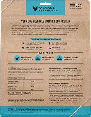 - These freeze-dried soft nibs are packed with extra protein from premium, butcher-cut beef and offer complete and balanced nutrition for your pup.
