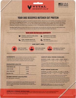 - Vital Essentials dog food and treats are crafted with farm-raised, humanely harvested proteins, going above industry standards to preserve their natural flavor and nutrients.