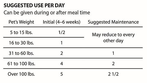 | Pet Weight | Initial Use (4 - 6 weeks) | Suggested Maintenance |