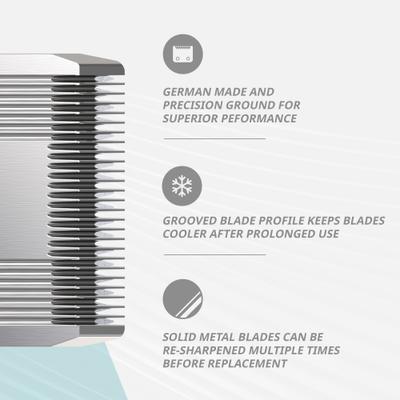 - The grooved blade profile helps to keep blades cool even after extended use.