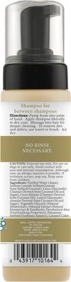 Pump foam into palm of hand. Apply shampoo liberally to dry coat. Massage into hair for deeper cleaning. To remove dirt and debris, use towel or brush. Air Dry.