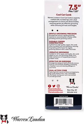 Pet parents, say goodbye to traditional grooming tools and hello to the Warren London Cool Metal Dog & Cat Comb. This comb is specially designed to revolutionize your kitty’s grooming routine with its unique features. The rounded tip bristles are perfect for sensitive skin, while the coarse bristles effectively demat, and the dense bristles catch loose hair. Made of durable copper, this comb not only adds a touch of sophistication but also ensures enhanced hygiene.