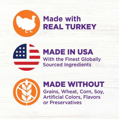 - Free of wheat, corn, soy, meat by-products, and artificial colors, flavors, and preservatives.