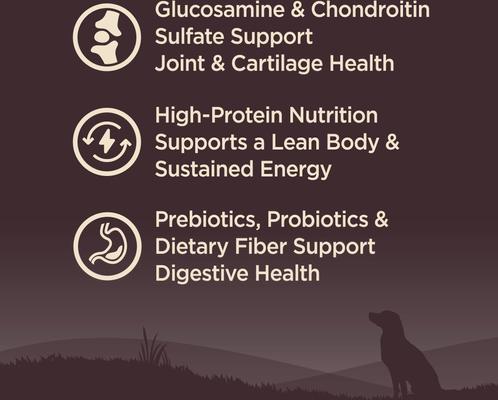 - Fortified with glucosamine and chondroitin for joint and hip health.