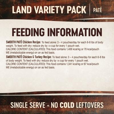 - Cada paquete variado viene con 12 deliciosas recetas de paté: 6 paquetes de paté de pollo y 6 paquetes de paté de pollo y Paté de pavo.