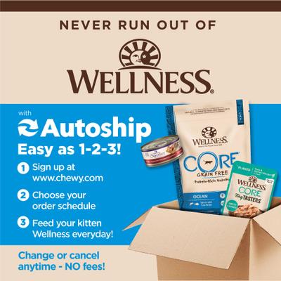 Wellness CORE Tiny Tasters Cat Food is formulated to meet the nutritional levels established by the AAFCO Cat Food Nutrient Profiles for maintenance.