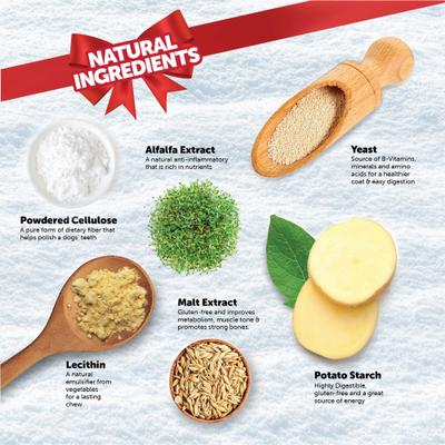 Potato Starch, Glycerin, Powdered Cellulose, Lecithin, Yeast, Malt Extract, Sweet Lupin Meal, Paprika, Alfalfa Extract.