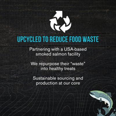 - Upcycled from a human-grade smoked salmon facility to reduce food waste, these sustainable, earth-friendly dog treats are responsibly sourced in the USA.