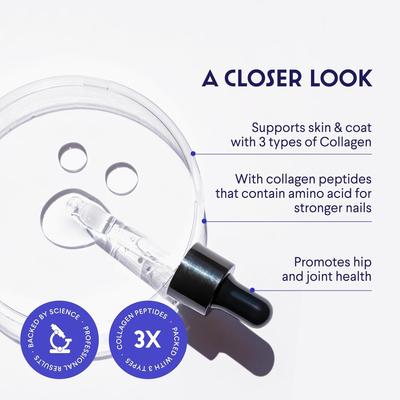 - Designed to support radiant skin, strong nails, glossy fur, and flexible movement through a combination of peptide sources.