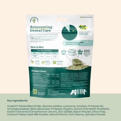 - This mix combines enzymes and kelp to target tartar and oral biofilm buildup while promoting a healthy oral biome for your furbaby.