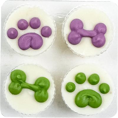 - These bone- and paw-shaped dog cookies feature seasonal colors and designs.