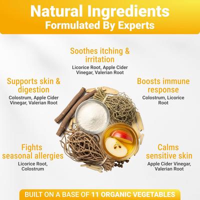 - Provides natural, comprehensive relief from dog allergy symptoms, including itching and licking.