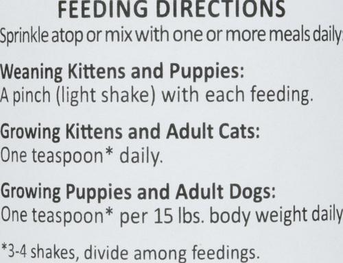 Weaning Kittens and Puppies:A pinch (light shake) with each feeding.
