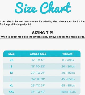 Sizing tip: When in doubt for a dog in-between sizes, always choose the next size up.