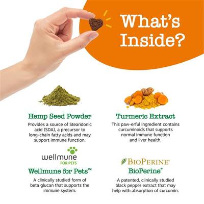 - The chews include taurine, quercetin dihydrate, cod liver fish oil, vitamin C, and ginger root to support immune function, and they may help maintain normal histamine levels.