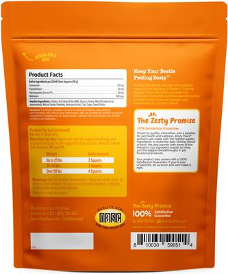 Lil' Zesties Calming Squares - Masticables blandos con sabor a pollo, suplemento de melatonina para perros, bolsa de 20 oz