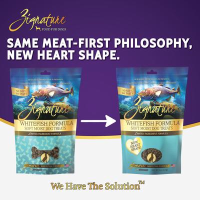 Treat time is even more rewarding with Zignature Whitefish Flavored Soft Dog Treats! These savory, moist treats are made with the same limited-ingredient philosophy as Zignature’s dry and canned food. Your dog will love the drool-worthy aroma of real whitefish—and you’ll love knowing these soft treats go easy on his stomach. Plus, the small size is paw-fect for use during training. Zignature soft treats make an enticing, high-value reward for even the pickiest pups!