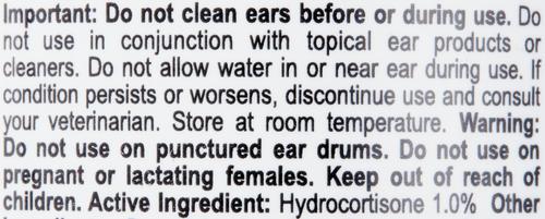 Important: Do not clean ears before or during use. Do not use in conjunction with topical ear products or cleaners. Do not allow water in or near ear during use. If condition persists or worsens, discontinue use and consult your veterinarian. Store at room temperature.